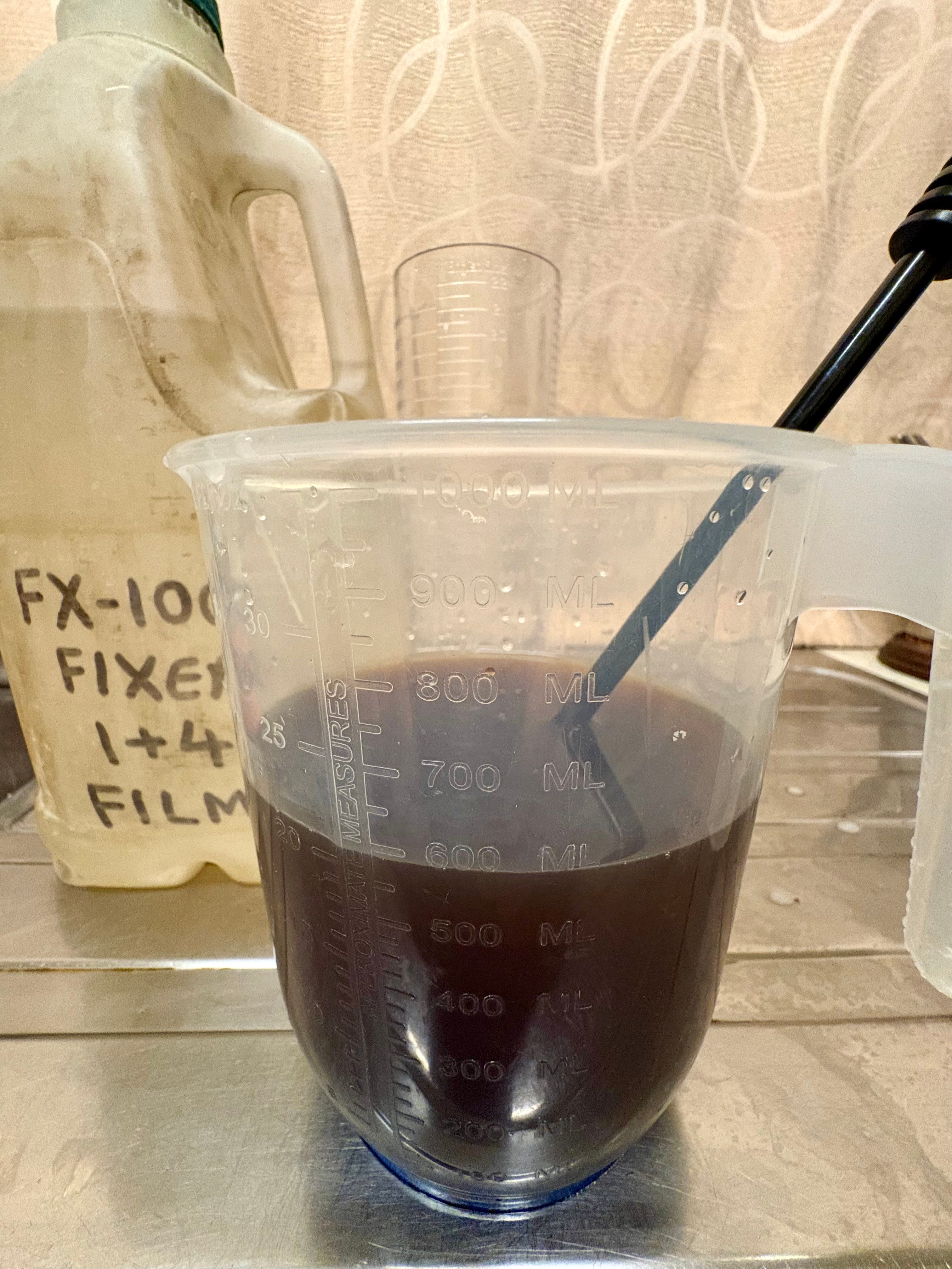 The recipe is relatively simple with ingredients that can be bought easily and cheaply. Although the C-M recipe is the easiest, because it doesn’t contain any Potassium Bromide, I prefer the variants that include it to prevent streaks of “Bromide drag”, especially on 35mm films. Otherwise the components are washing soda (NOT baking soda!), vitamin C and instant coffee (the cheaper the better). Just bear in mind that Caffenol is best mixed fresh, in a batch size for your film, and used straight away because it doesn’t keep. I also recommend fully dissolving each component in turn, before adding the next one, and stirring well. The coffee can take a bit of time to fully dissolve, make sure it is fully dispersed before using. Also if you have any doubts about your mains water quality, deionised water can be used; I don’t bother here in the UK. The recipe that I used was: